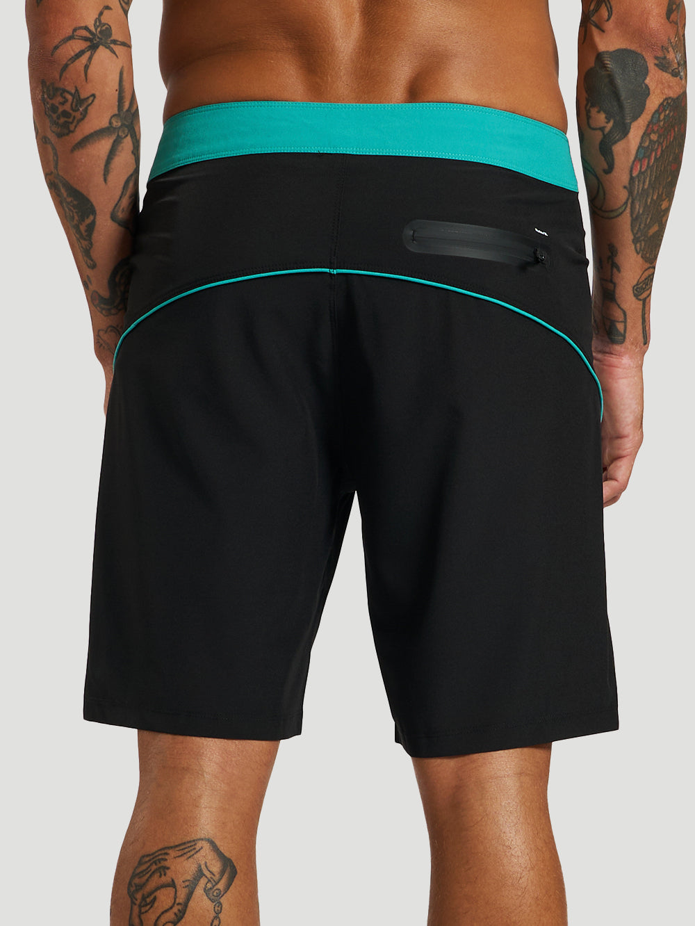 - Bolso traseiro com zíper selado e puxador em elástico