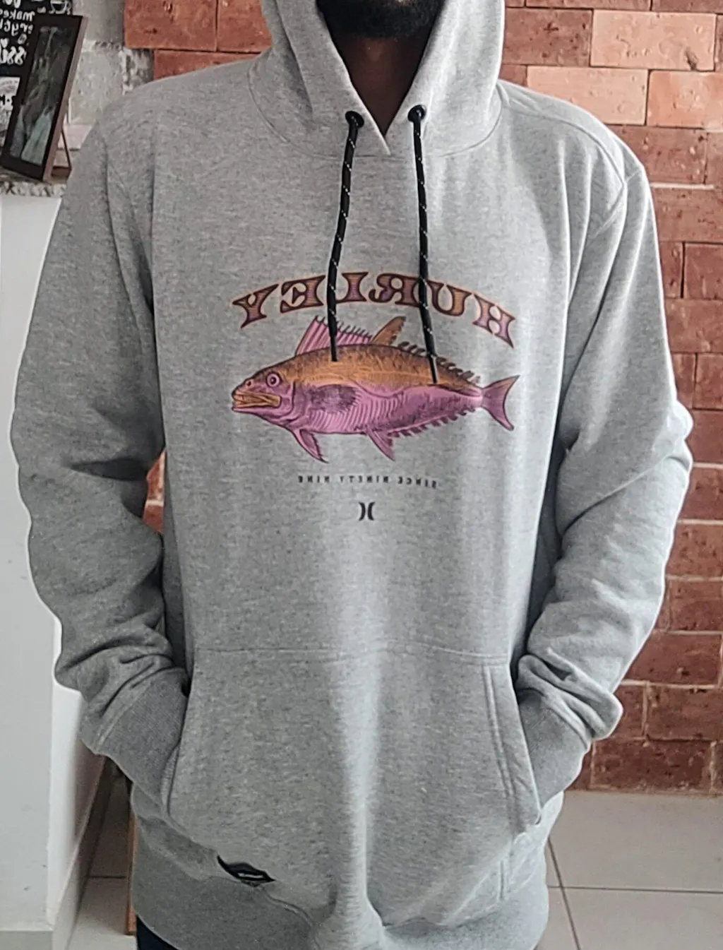 Moletom Canguru Hurley Fish Mescla Cinza